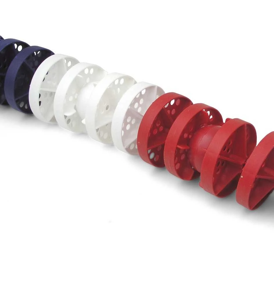 Uilisées pour délimiter les couloirs lors des compétitions, ces lignes de nage éviteront que les vagues produites par un nageur n’affectent l’évolution des nageurs voisins. La présence de la ligne de flottaison et du système de rotation individuel des modueles montés sur une corde en nylon absorbe tout type de turbulences à la surface de l’eau. Il est recommandé d’installer également des lignes de nages de couloirs le long des parois latérales afin d’amortir l’impact des vagues contre ces dernières.