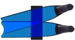 L’angle de~22° entre la lame et le chausson rend votre nage plus puissante et en même temps diminue le travail sur vos cuisses
